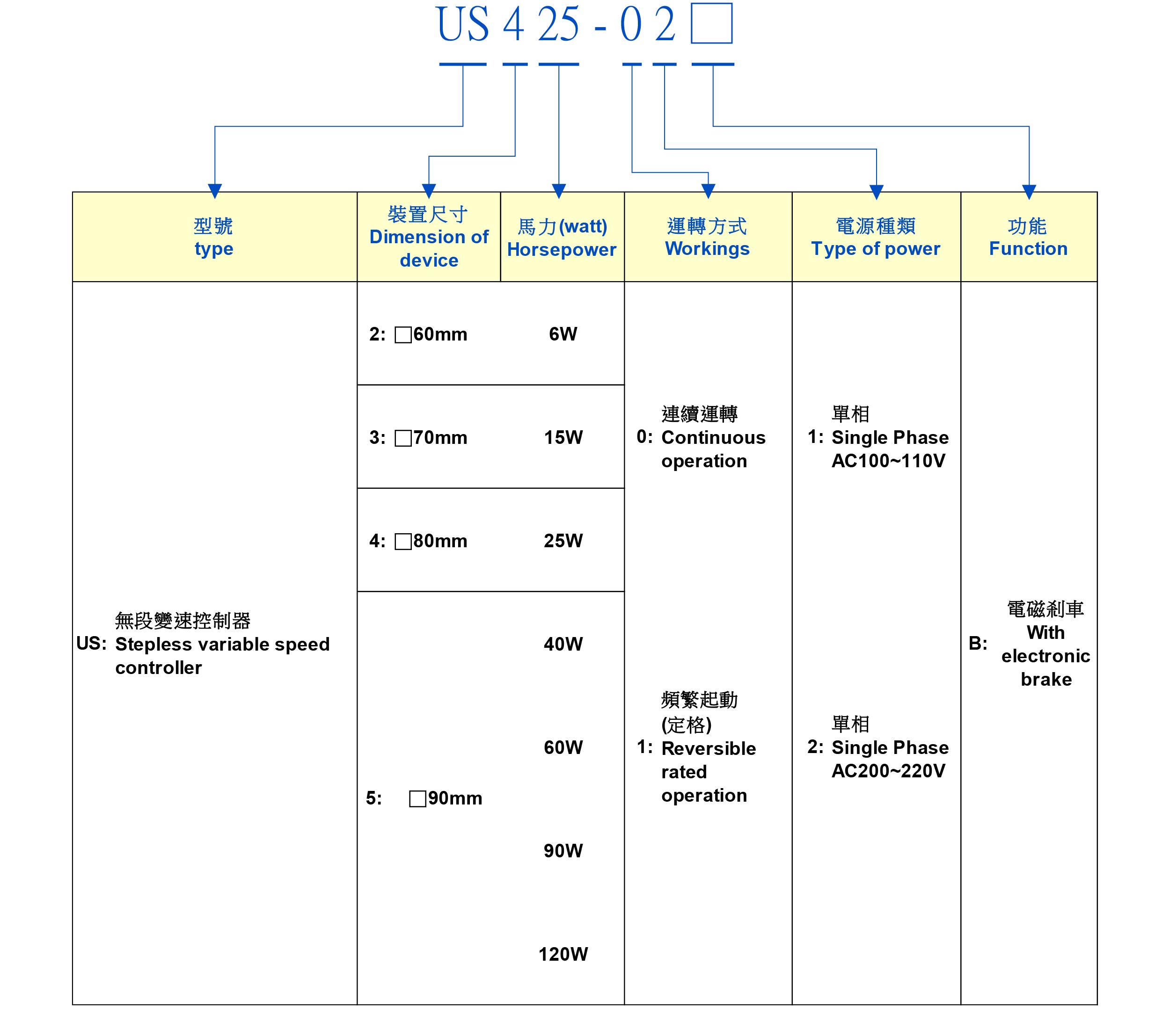 型号US206-02 US206-01 US206-01B US206-02B
