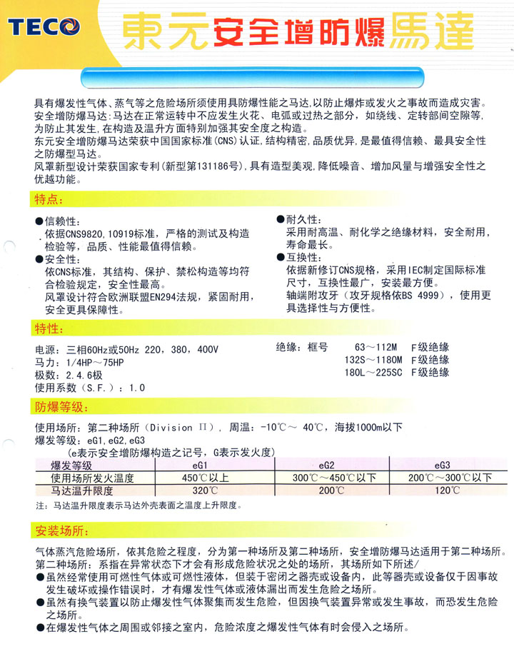 TECO东元防爆电机0.37KW